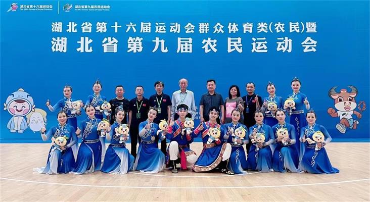 In the 16th Hubei Provincial Games Mass (Farmers) Aerobics Team Competition, our city's representative team was fearless of strong players, united and cooperated, and fought bravely. With perfect performance, they won one gold medal, four silver medals, and the top overall team score.